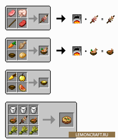 Мод на сытную еду Well Fed добавит в игру возможность создавать большие, более сытные блюда. Всего будет добавлено четыре вида новых блюд: еда на шпажке, подобие рагу, фруктовый пирог и большой пирог с мясом и рыбой. Данная еде не займет много места в инвентаре, поэтому вы можете носить ее с собой по всюду. Она утоляет голод практически моментально и вы всегда будете сыты и готовы к активным действиям.